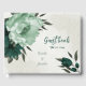 Unique wedding guest book featuring romantic emerald green and soft green flowers and green leaves