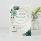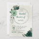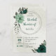 Unique bridal shower invitation featuring romantic emerald green and soft green flowers and green leaves botanical geometric frame.
