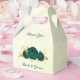 Beautiful emerald green flowers & gold leaves on marble background favour box