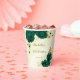 emerald green flowers gold leaves marble paper cups