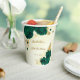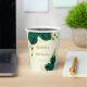 Beautiful emerald green flowers & gold leaves on marble background paper cup