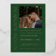 A refined emerald green wedding invitation featuring elegant foil typography available in gold, silver, or rose gold. The design includes a customisable photo area, modern layout, and polished lettering for a sophisticated and timeless presentation. Perfect for couples seeking a luxurious invitation that blends classic style with personalised detail.