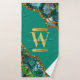 Emerald Green & Gold Agate Geode Glitter Monogram Bath Towel Set
