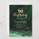 Emerald Green Gold Agate Marble 90th Birthday Invitation