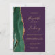 Emerald Green Gold Agate Purple QR Code Wedding Invitation