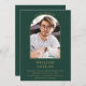 Featuring a simple gold arch on an emerald green background, this stylish graduation party invitation can be personalised with your special grad photo. Designed by Thisisnotme©
