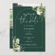 This elegant emerald green botanical greenery leaves floral gold arch save the date invitation can be personalised with your information in chic typography with your special photo and wedding website QR code and details on the reverse. Designed by Thisisnotme©