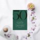 Modern 50th birthday invitations with a large heading "50" in real metallic foil. Your event details are printed below in matte white font. Gold foil on an emerald green background.