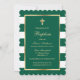 Emerald Green Gold Cross Striped Baptism Invitation