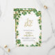Create elegant white, emerald green and gold save the date cards. These cards are decorated with emerald green eucalyptus greenery on a white background. Templates make it easy to type your names, date, place, and website and upload your photo. You can also add your QR code - to create a QR code, make sure to add your website there.
