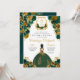 Emerald Green & Gold Floral Elegant Quinceañera Invitation