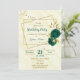 elegant romantic emerald green flowers and gold leaves botanical geometric luxury birthday party invitation
