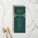 Elegant emerald green and gold wedding menu card featuring delicate floral details and a romantic rope heart design. Perfect for formal receptions, fall or winter weddings, and sophisticated banquet dinners. Personalise with your names, date, and custom menu selections to create a unique touch for your special day. Coordinates beautifully with matching emerald and gold wedding invitations, signs, and stationery from the same collection.
