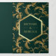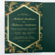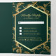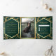 Emerald Green Gold Flourish Swirl Wedding Photo Tri-Fold Invitation