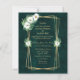 PLEASE NOTE: This is a beautiful elegant style wedding invitation, with an emerald green paper background, a gold geometric frame and tropical flower accents.