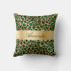 Emerald green gold leopard name elegant script cushion