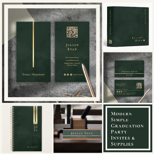 Emerald Green & Gold Luxe Monogram Vertical Business Card