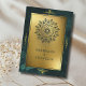 This elegant enclosure card effortlessly combines tradition with modern convenience. A sleek, thin gold gradient border surrounds a captivating centre piece of rich emerald green. A very thin gold gradient frame further elevates the design, accented by delicate touches of ornate gold elements.