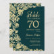 Emerald Green Gold Roses Surprise 70th Birthday Invitation