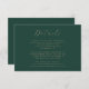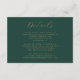 This elegant modern wedding details enclosure card features gold-coloured text on an emerald green background. The title appears in beautiful handwriting script, with customisable text below in sans serif font. The reverse side is solid green.