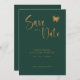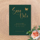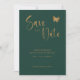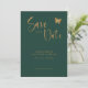 Emerald Green & Gold Script with Glitter Butterfly Save The Date
