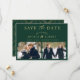 Emerald Green Gold Unique Brush Stroke 2 Photo Save the Date Card.