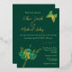 Emerald green Real foil gold flower and butterfly Wedding Invitation