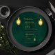 Royal Emerald Green Golden Lights Round Wedding Menu Cards.