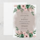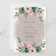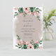 This design features a soft mauve watercolor wash that creates a dreamy atmosphere. Lush clusters of emerald green foliage and pale pink roses adorn the top and bottom, offering a touch of rustic elegance. Delicate eucalyptus leaves and anemone-style blossoms add a whimsical botanical feel, perfect for a romantic spring or autumn ceremony.