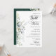 This bridal shower invitation features an elegant modern minimalist style with watercolor greenery foliage leaves arrangements and beautiful calligraphy and clean and serif typography fonts on an emerald green background. The simplicity of this design adds a touch of elegance to your wedding. It works well with many wedding themes and definitely a great addition to your wedding. Just customise the name and wording in a few easy steps and personalise the invitation card with your photo of the bride-to-be and replace the QR Code with yours on the back of the invitation to give your invitation a nice personal touch.
