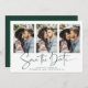 Modern Handwritten Save the Date Multiple Photo Card in emerald green and white in a font that is elegant and evokes a romantic handwritten feel. Designed to use three of your favourite photos for added customisation. Easily add your names and dates for a truly personalised design. Please contact us at cedarandstring@gmail.com if you need assistance with the design or matching products.