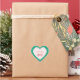 Cute emerald green polka dot pattern stickers with a heart shaped patch stitched in pink and embellished with a pretty in pink bow. Personalise by adding your name to this trendy colour trend pattern Perfect for the stylish teen girl! Flat printed image, not actual bow.
