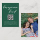 This solid emerald green wedding honeymoon fund card features classic white script for a couple getting married in a forest or other nature venue. Add your favourite couple engagement photo on the back. Celebrate your love with this tranquil colour and coordinate with our matching minimalist typography collection.