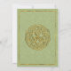 An Irish-themed wedding invite, this green wedding announcement features emeralds embedded in the frame (please note, printed on only) on a decorative green background showcasing an ornamental scrolling pattern and other tiny green gems. The lighter green centre is framed by a shiny gold border, and there is a gold Celtic knot at the top. The reverse of the invitation features the same lighter green background and the golden frame, with a larger image of the Celtic Knot in the middle.