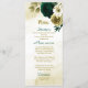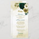 Beautiful emerald green ivory white and gold flowers with gold leaves wedding menu.
