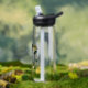 Beautiful emerald green ivory white and gold flowers with gold leaves water bottle.