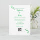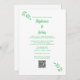Emerald Green Leaf Script White QR Code Wedding Invitation