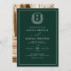 Emerald Green Leafy Crest Monogram Photo Wedding Invitation