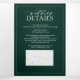 We're loving this trendy, modern emerald green Trifold invitation simple, elegant, and oh-so-pretty, it features a hand drawn leafy wreath encircling a modern wedding monogram. It is personalised in elegant typography, and accented with hand-lettered calligraphy. Finally, it is trimmed in a delicate frame. To remove meal choices in the RSVP section, we have created a how-to video for you here: https://youtu.be/ZGpeldQgxoE. A Wedding Details contains extra details like, driving directions, reception information, hotel information, etc. This can also include your wedding website including provision for a map (via screen capture) has been included, and even your favourite engagement photo on the back! Veiw suite here: