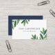 Modern and crisp business card in white with leaves in different hues of green and blue for a therapist, psychologist, or similar.