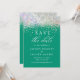 Emerald Green Luxury Glitter Wedding Save The Date Cards features a emerald green background accented with iridescent glitter and your custom save the date information. Personalise with your text by editing the text in the text boxes provided. Designed for you by ©Evco Studio www.zazzle.com/store/evcostudio