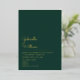 Real gold foil, trendy script wedding invitation featuring a classic design that features the happy couple's names set in an elegant script above the special wedding details on an emerald green background. Designed by Thisisnotme©