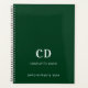 Emerald green background and white text. Personalise and add your monogram initials, name and a title year.