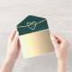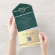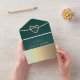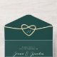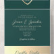 Introducing our sophisticated emerald green all-in-one wedding invitation, where elegance meets modernity. Featuring the monogram initials of the bride and groom delicately nestled within a gold rope heart, this invitation exudes timeless charm.
