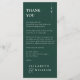 An elegant minimalist emerald green wedding celebration thank you reception card. Personalised with your special thank you message set in stylish typography. A special keepsake thank you to your guests. Designed by Thisisnotme©