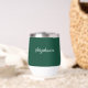Elegant, rustic, simple, monogram, minimalist, name, emerald green, thermal wine tumbler. Beautiful, trendy design.