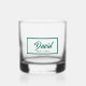 Wedding party gift for your Best Man in trendy groomsman colours! Whiskey glass that features the name of your Best Man printed in emerald green, stylised lettering within a rectangular border of the same colour. Personalise your glassware by editing and replacing Best Man's name with your own as desired.