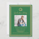 Emerald green background, decorated with a golden frame, and a faux gold graduation cap. Personalise and add a photo name and details.