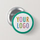 Personalise our high quality round pin back button with your company or school logo. Pin back buttons have a long history as an effective promotional tool and can become collectable souvenirs. The round button is available in 5 sizes: 1.25 inch, 2.25 inch, 3 inch, 4 inch, and 6 inch. This design has a white background with an emerald green border. Also sold in other colours and all colours are customisable. No minimum order quantity and no setup fee. Made in USA.