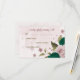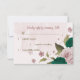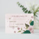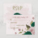 Beautiful romantic wedding response card featuring emerald green and pink flowers and some leaves .